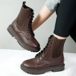بوت زنانه رنگ قهوه ای مدل دوکش B بند دار ساق بلند کد 11277