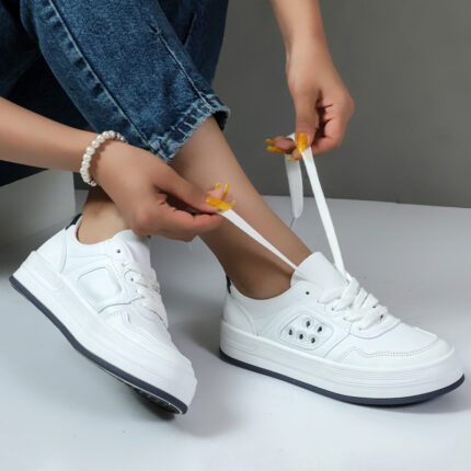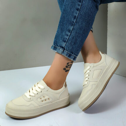 کفش ونس مردانه مدل پولاندبیر Pull&Bear رنگ سفید زیره کرم کد 1845