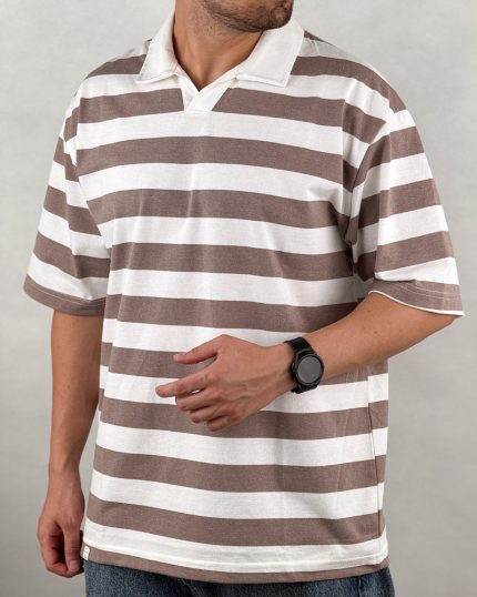 تیشرت اسپرت مردانه مدل رينگر يقه شکاري رنگ کرم کد 10308