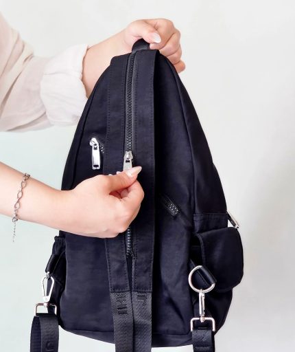 کاربرد:روزمره،اسپرت،کژوال ابعاد : ۳۶*۲۶ جنس رویه :برزنت ضد آب باکیفیت جنس آستر: پارچه نحوه بسته شدن: زیپ و بست گارانتی: ضمانت سلامت کالا جیب داخلی: بله سایر: بند قابل تنظیم ،تبدیل به کوله و بادی بگ تولید:ایران رنگ: مشکی