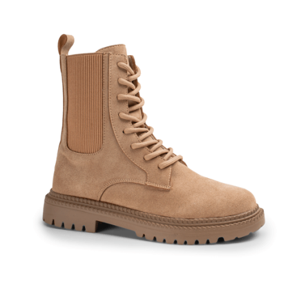 بوت زنانه رنگ کرم مدل دوکش B بند دار ساق بلند کد 11272