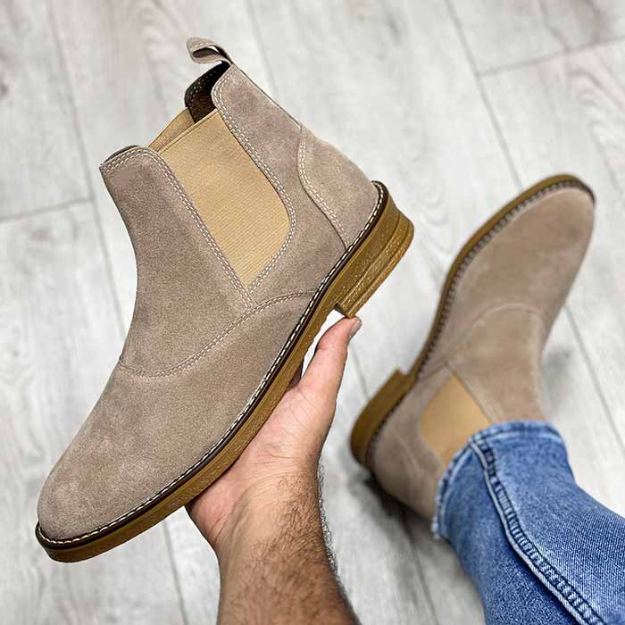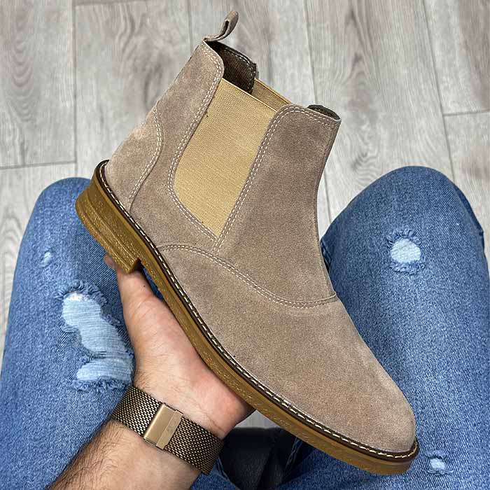 نیم بوت مردانه شتری جیر اشبالت ضد آب مدل چلسی سایز 40 تا 45