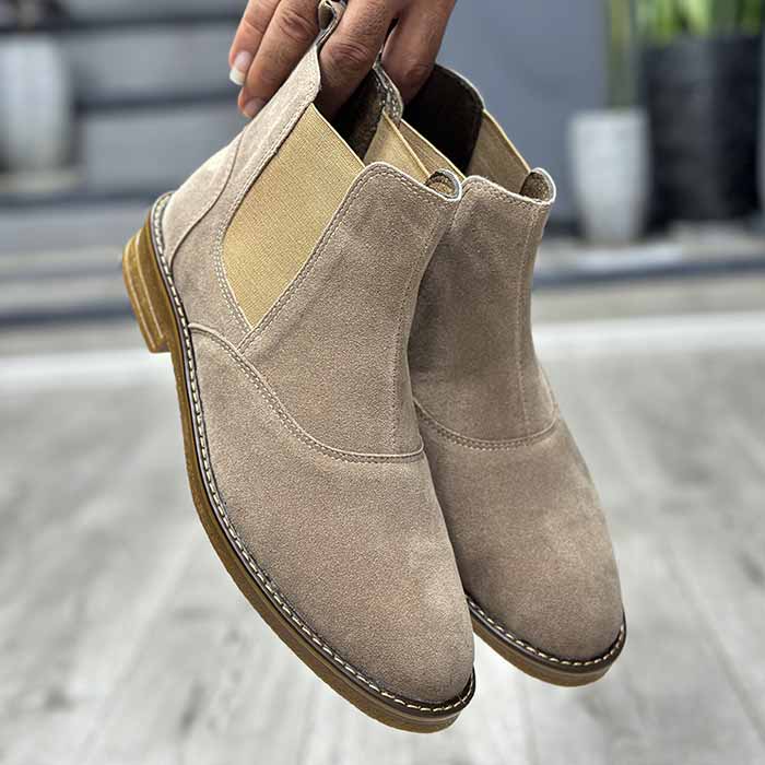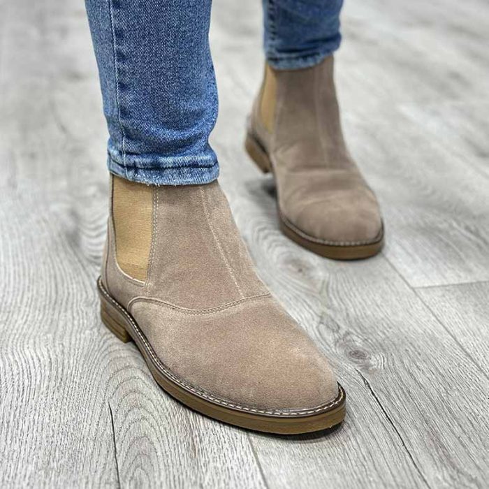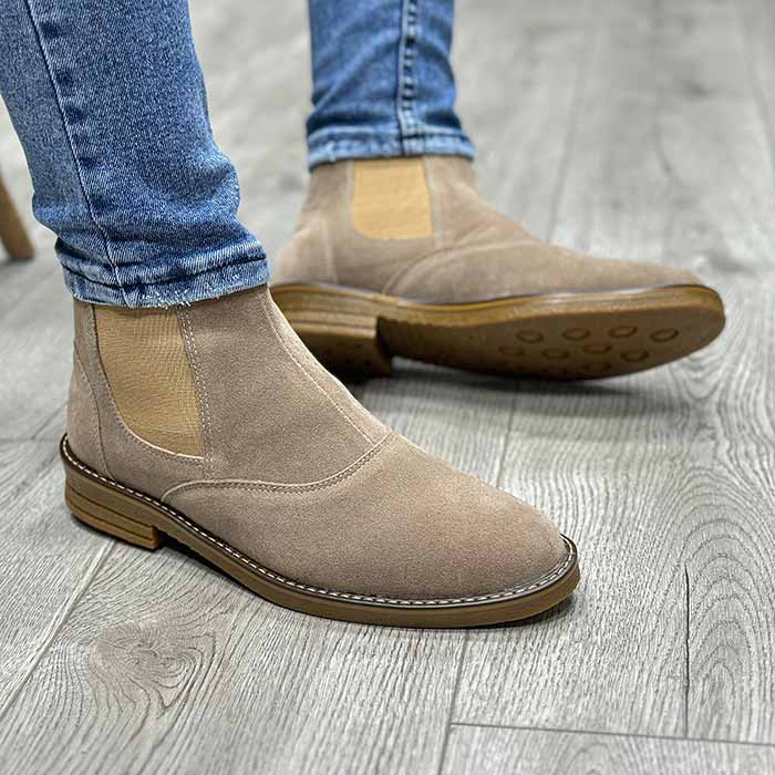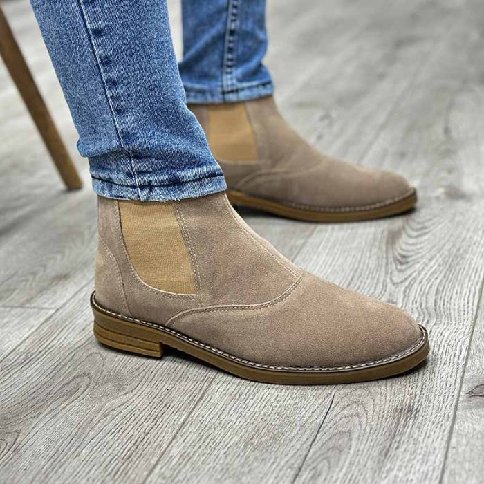خانه مردانه بوت و نیم بوت مردانه نیم بوت مردانه رنگ خاکی مدل چلسی کش دار کد 785