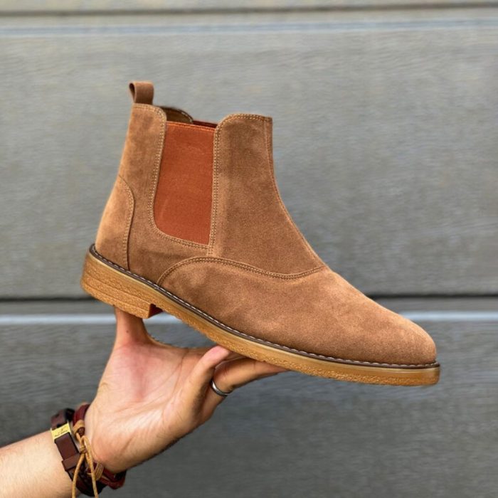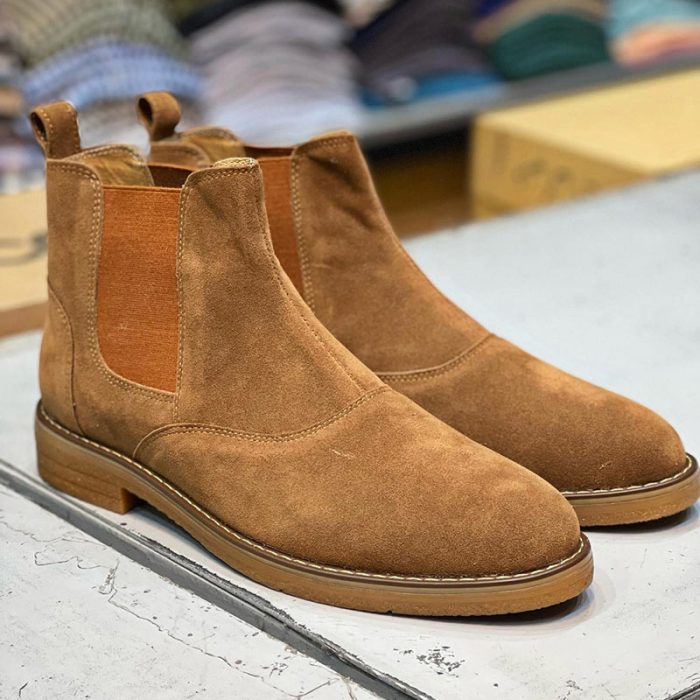 نیم بوت مردانه شتری جیر اشبالت ضد آب مدل چلسی سایز 40 تا 45
