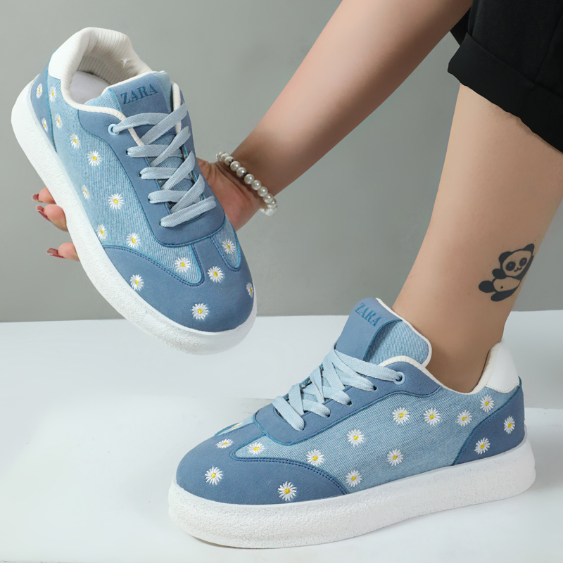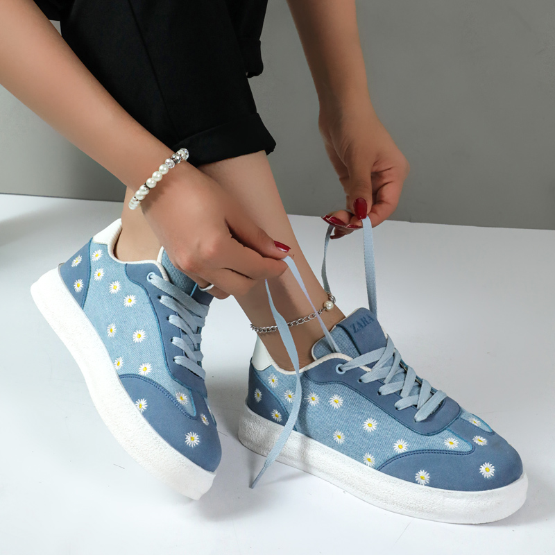 کفش کتونی راحتی زنانه مدل بابونه گلدوزی رنگ آبی کد 32340